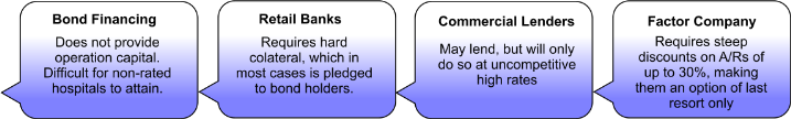 Specialized commercial funding and collection services to hospitals and other healthcare providers regardless of credit ratings